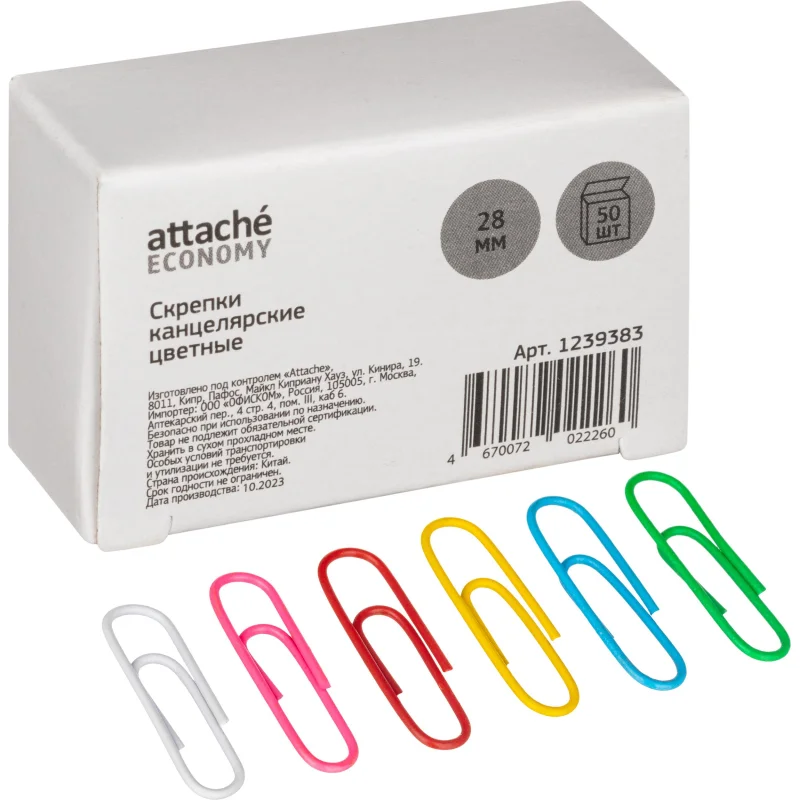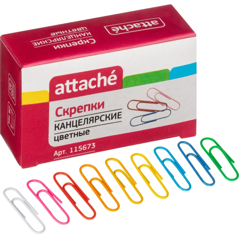 Скрепки канцелярские Attache 28мм, овальные, 100шт/уп, цветные
