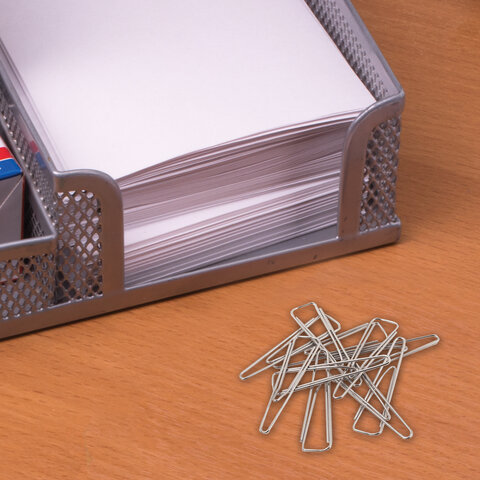 Скрепки изготовлены из стали, имеют треугольную форму и блестящее никелевое покрытие. Длина скрепки составляет 25 мм. Не окисляются и не повреждают документы. 100 штук в картонной коробке.