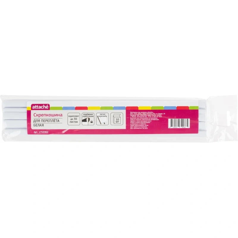 Скрепкошина для быстрого переплета Attache, белые, до 30л., 10шт/уп