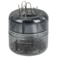 Пластиковый диспенсер для скрепок с магнитом, способствующим удобной фиксации скрепок.