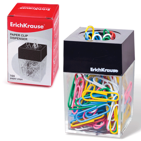 Скрепочница магнитная Erich Krause прозрачная, +100 скрепок