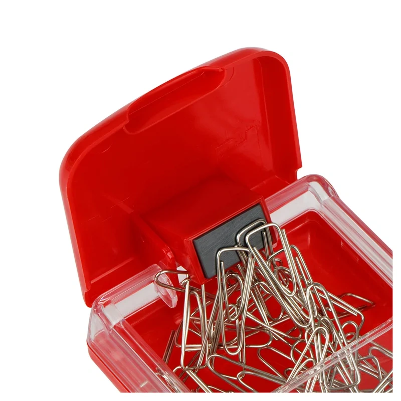 Скрепочница магнитная «СТАММ» с крышкой предназначена для хранения канцелярских скрепок. Компактный и лёгкий диспенсер прямоугольной формы изготовлен из качественного пластика. Размер изделия – 45*60*25 мм. Скрепочница оснащена магнитом для удобной фиксации скрепок. Поставляется в картонной коробке. Цвет скрепочницы – ассорти.