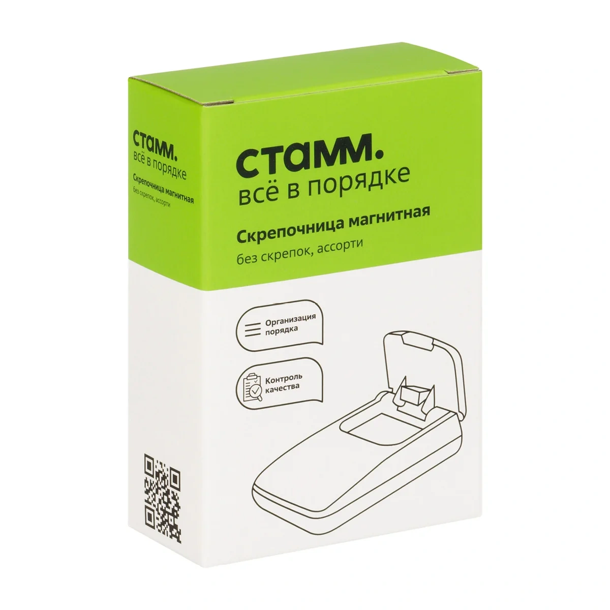 Скрепочница магнитная СТАММ, с крышкой, без скрепок, ассорти, картонная коробка