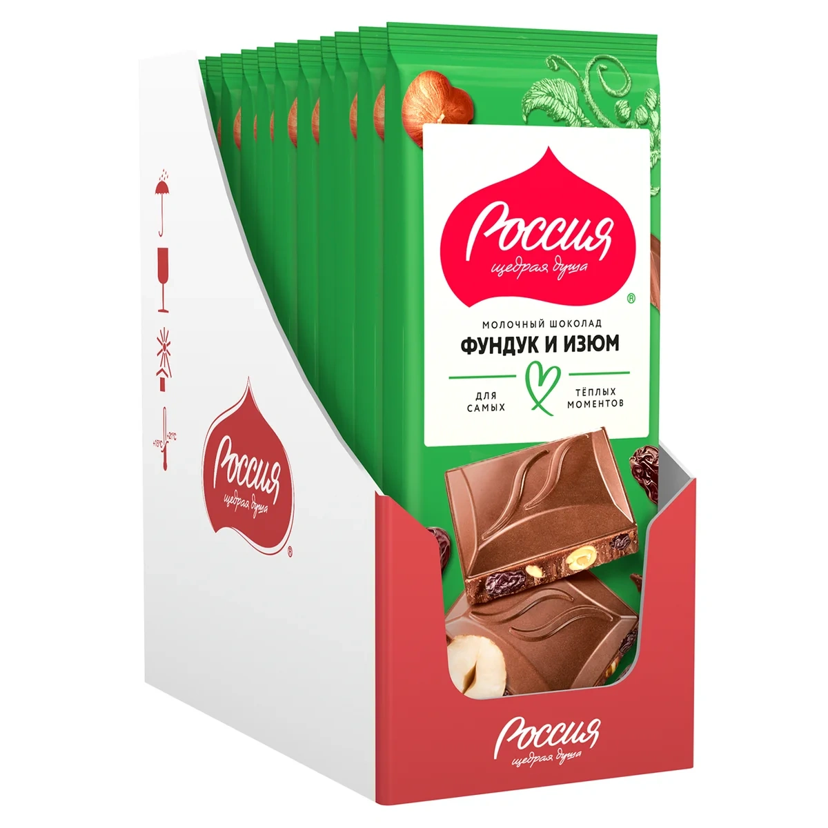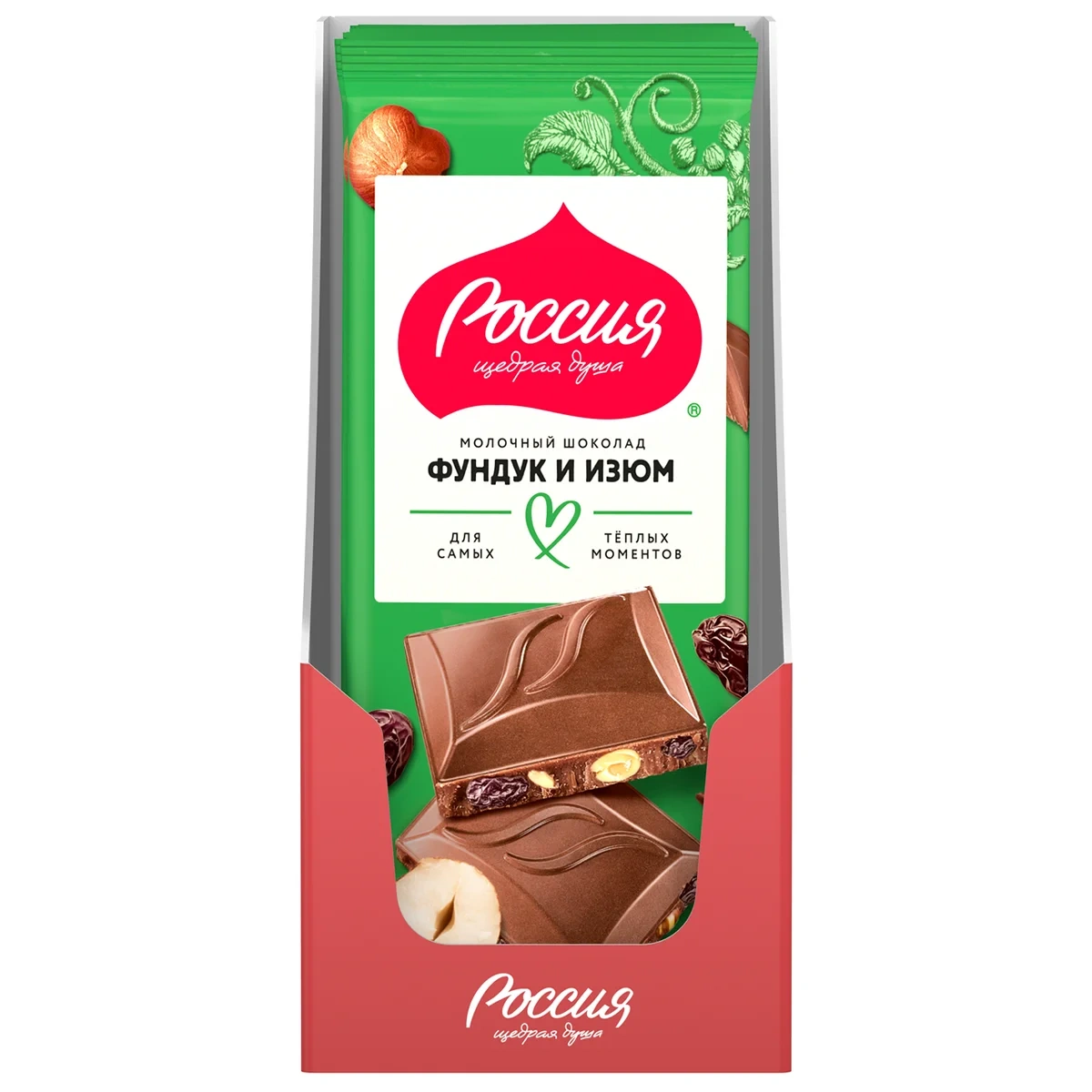 Шоколад Россия Щедрая душа молочный фундук с изюмом, 75г
