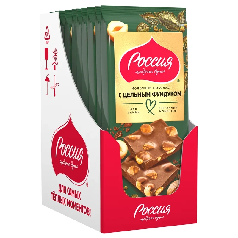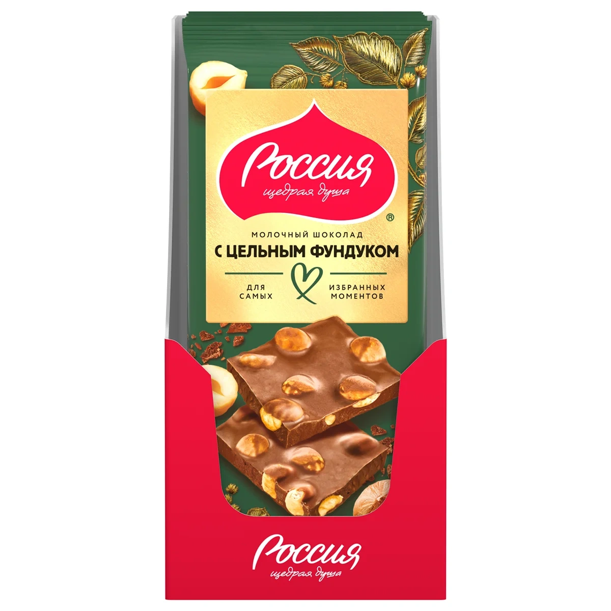Шоколад Россия Щедрая душа молочный цельный фундук, 75г