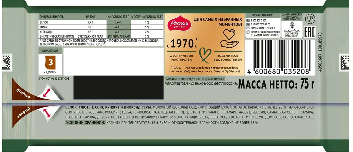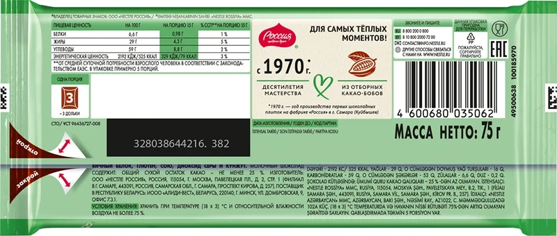 Шоколад Россия Щедрая душа очень молочный, 75г