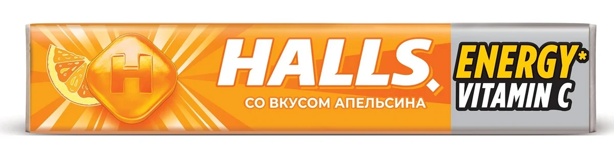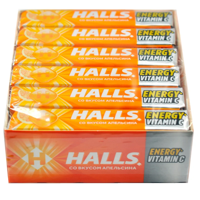 Карамель леденцовая Halls с витамином С и вкусом апельсина, 25г x 12 шт