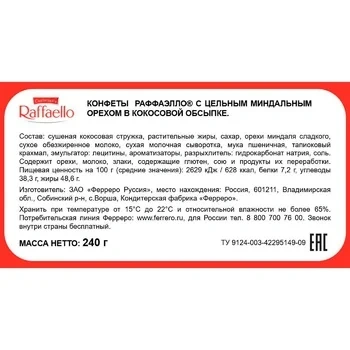 Конфеты Raffaello коробка, 240г