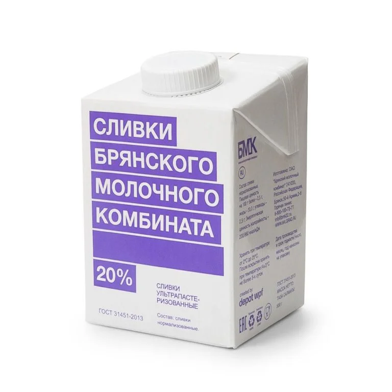 Сливки 20% Брянский Молочный Комбинат, 500 г БЗМЖ (без заменителя молочного жира) – производится в России из 100% натуральных компонентов. Продукт изготавливается из высококачественного коровьего молока, прошедшего ультрапастеризацию. В составе нет искусственных молочных жиров, химических добавок и консервантов. Низкое содержание лактозы делает сливки подходящими для людей с чувствительностью к белку коровьего молока. Продукт экологически чист и безопасен для питания взрослых и детей любого возраста. Натуральный состав отлично впишется в рацион тех, кто внимательно следит за своим питанием и качеством продуктов. Сливки имеют нежный вкус и легкий приятный аромат. Благодаря однородной текстуре они прекрасно дополнят чай или кофе, а также разнообразят воскресный завтрак. Продукт легко взбивается и хорошо растворяется в любой жидкости, будет незаменим для приготовления различных соусов и кремов. Товар удобно хранить при комнатной температуре не нарушая целостности упаковки.