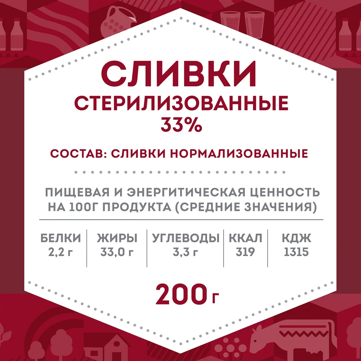 Сливки Домик в деревне стерилизованные 33%, 200г