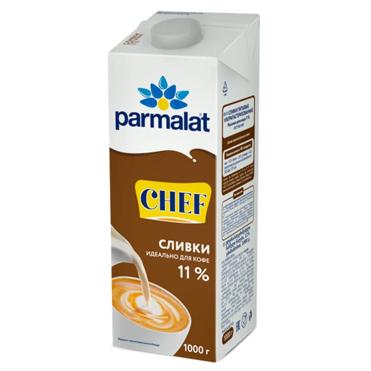 Сливки ультрапастеризованные Parmalat Chef 11%, 1л БЗМЖ (без заменителя молочного жира) — натуральный и питательный продукт, созданный из коровьего молока. В их составе отсутствуют заменители жиров, что делает вкус максимально естественным и позволяет сохранить всю пользу. Сливки умеренной жирности не наносят урона фигуре. Это достойный источник кальция, необходимого организму для полноценного функционирования. Также в продукте присутствуют витамины группы В, РР, А, минеральные вещества. Напиток можно употреблять в чистом виде, добавлять в чай или кофе, придавая им сливочный вкус и густоту, а также использовать как ингредиент для коктейлей, иных десертов. Не менее интересными с ними получаются кремовые супы, соусы для пасты или мясных блюд.