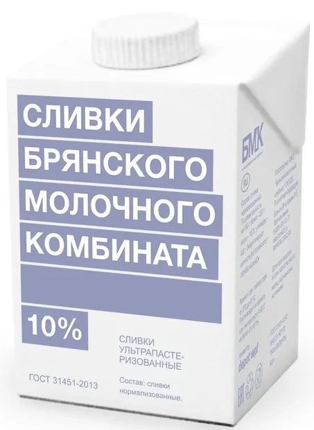 Сливки питьевые Брянский молочный комбинат ультрапастеризованные 10%, 500г
