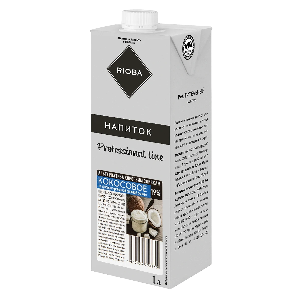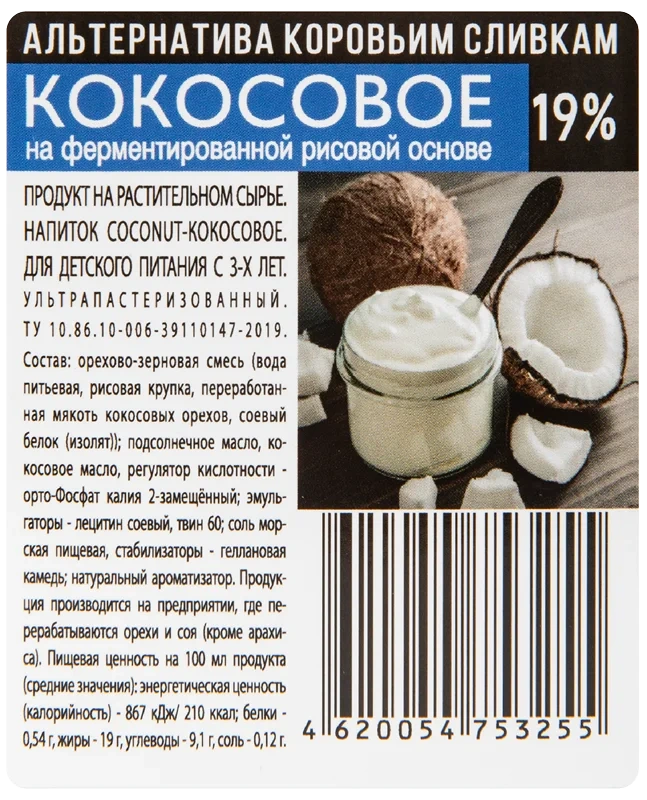 Сливки Rioba Кокосовые 19%, 1л