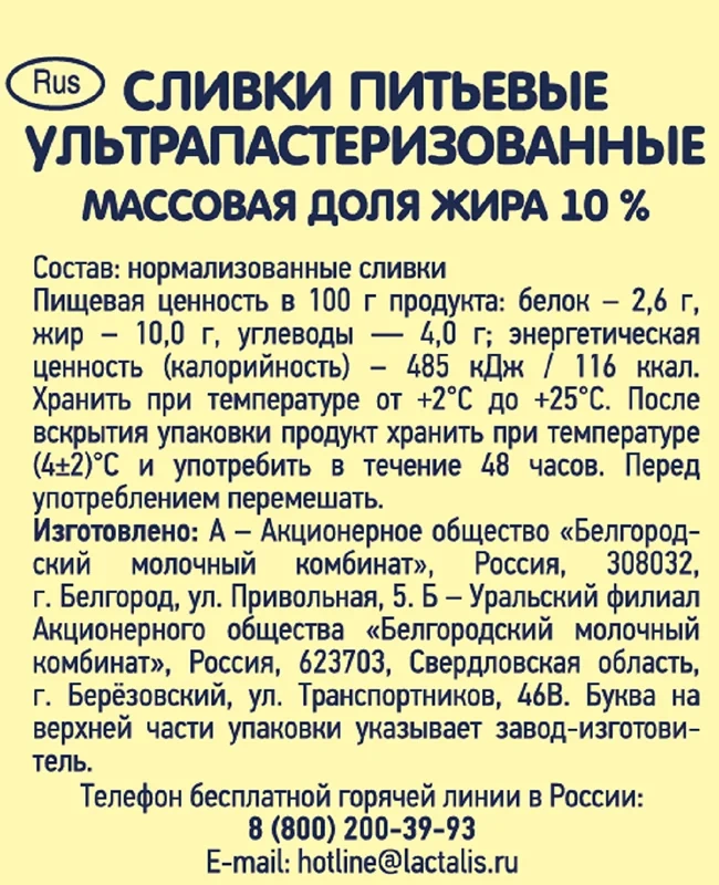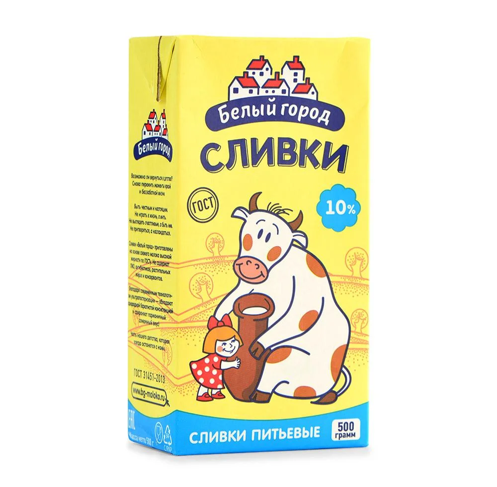 Сливки Белый город ультрапастеризованные 10%, 500мл