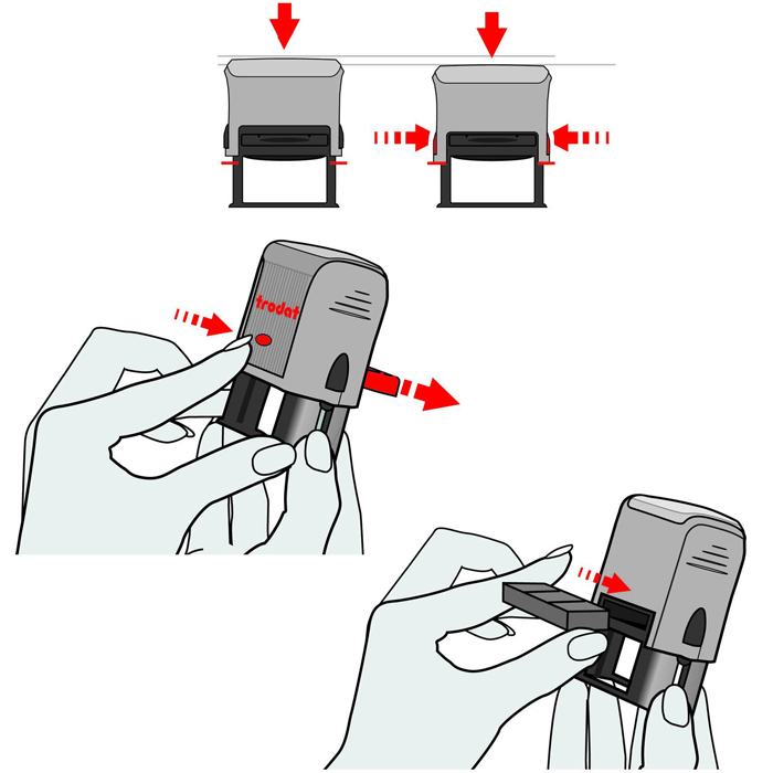 Замена штемпельных подушек происходит быстро, просто и не пачкая пальцев рук.