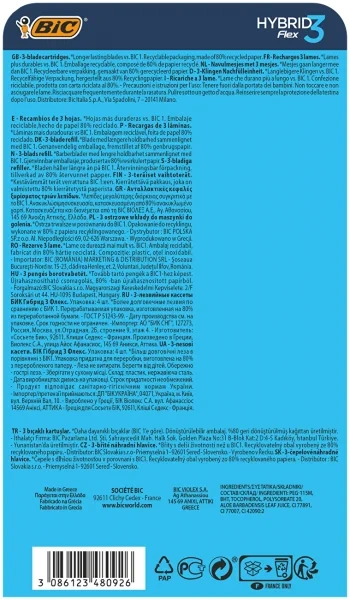 Сменные кассеты для мужской бритвы BIC Flex 3 Hybrid 3 подвижных лезвия, 4 шт