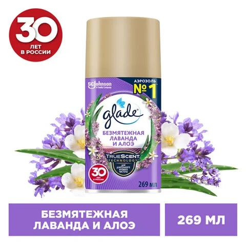 Сменный баллон 269 мл, GLADE 'Безмятежная лаванда и алоэ' для автоматических освежителей, 864986