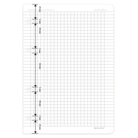 Сменный блок для тетрадей на 4 кольцах А5 120 л., BRAUBERG, ПОВЫШЕННОЙ ПЛОТНОСТИ, белый, 403638