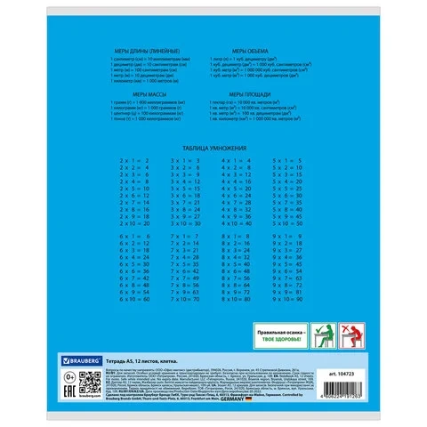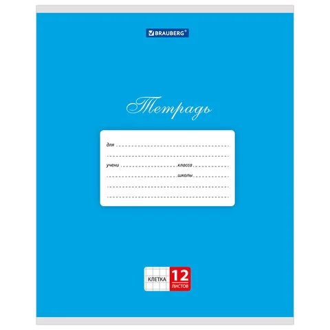 Тетрадь 12 л. BRAUBERG КЛАССИКА, клетка, обложка картон, СИНЯЯ, 104723