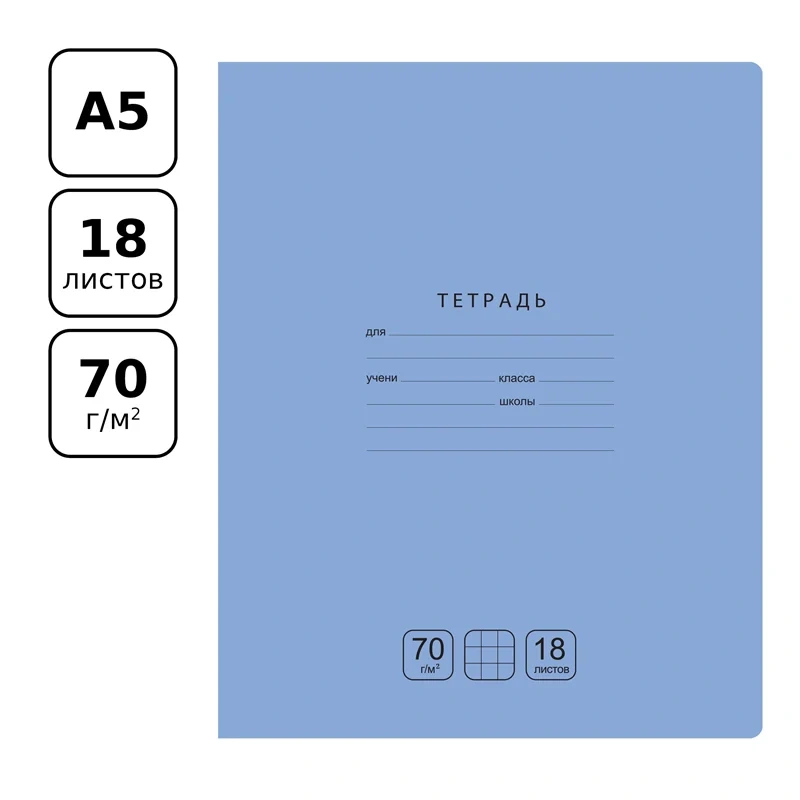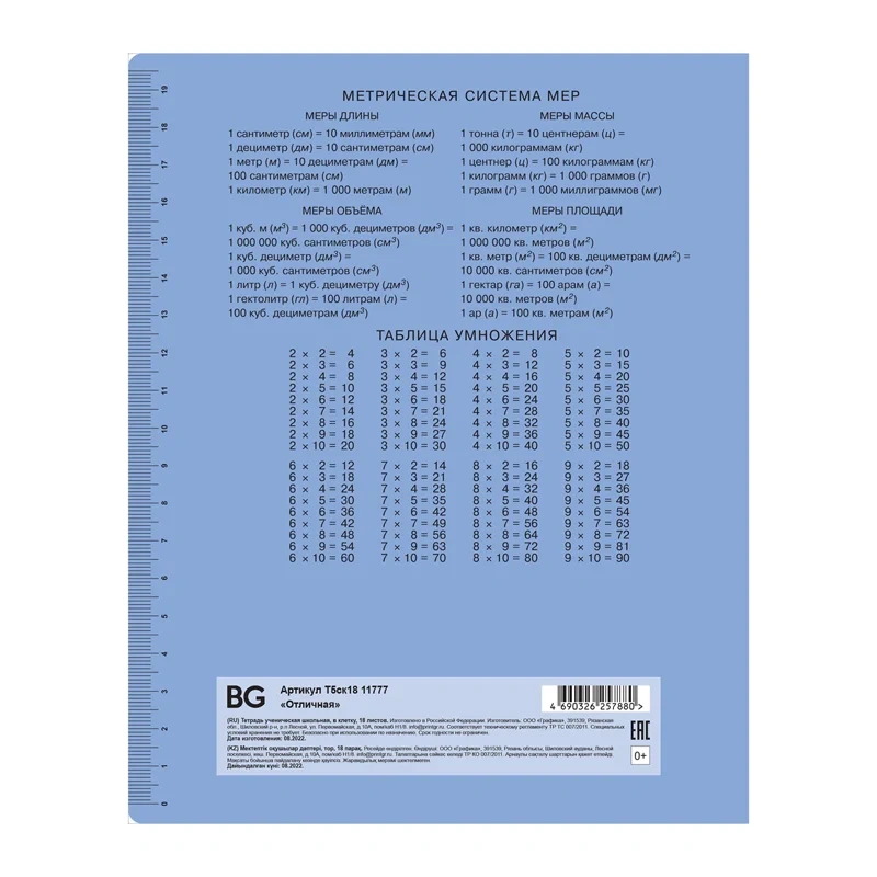Тетрадь 18л., клетка BG 'Отличная', голубая, 70г/м2