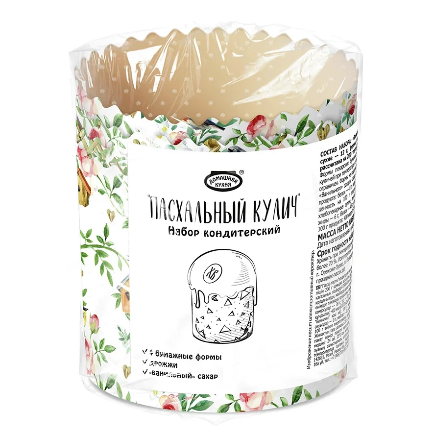 Нежный вкус и воздушная текстура, как у традиционного пасхального кулича. Не требует добавления дрожжей. Не содержат глютен - подтверждено сертификатом AOECS RU-014-015. Без лактозы. Безопасная герметичная упаковка. Не содержит красителей.