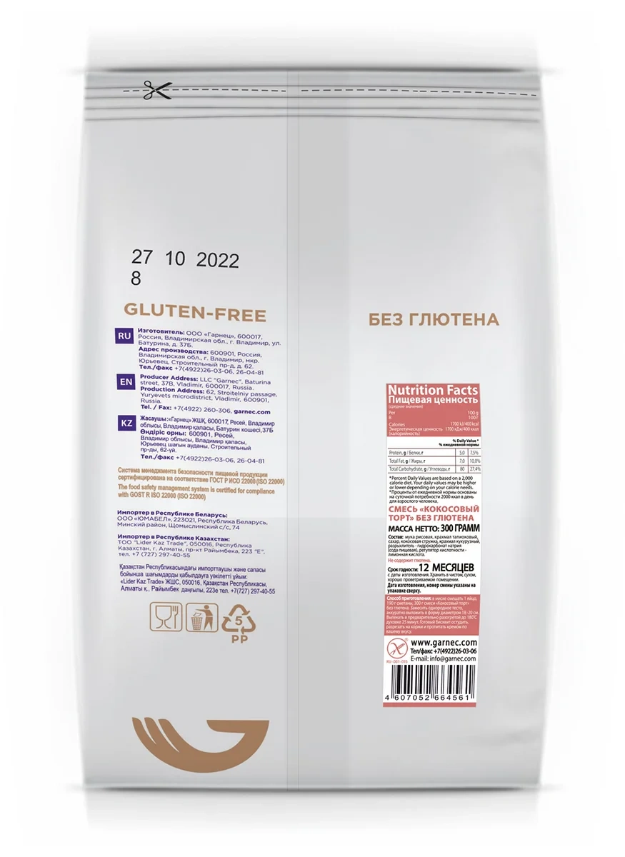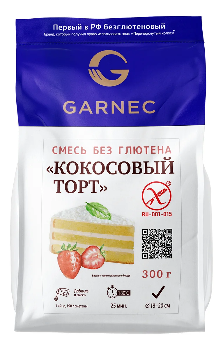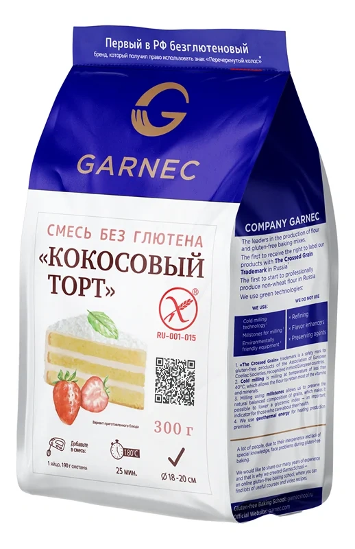 Смесь для выпечки Garnec Кокосовый торт без глютена, 300г