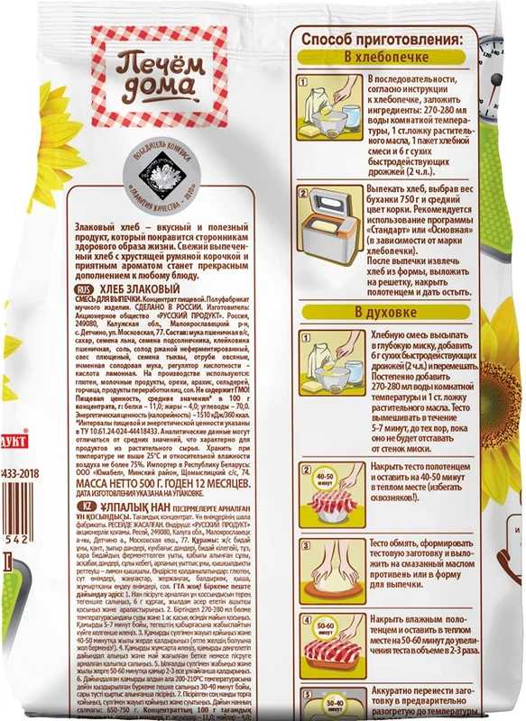 Смесь для выпечки Печем дома Хлеб злаковый, 500г