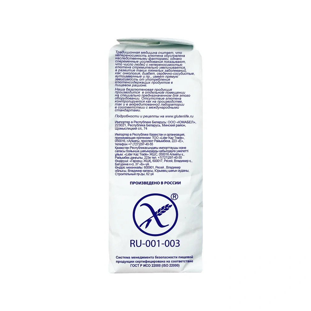 Мука рисовая, крахмал тапиоковый, крахмал кукурузный, мука амарантовая, мука льняная белая.