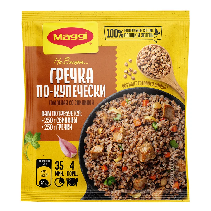 Гречка по-купечески — сытное и вкусное блюдо с давней историей. Рассыпчатая каша, пропитанная подливой со специями, ароматные кусочки жареного мяса — этот рецепт оценят даже те, кто недолюбливает гречку. Maggi На второе предлагаем вам замечательный рецепт гречки по-купечески для приготовления без лишних хлопот. Уникальная композиция натуральных овощей, ароматных трав и пряных специй и пошаговая инструкция помогут вам приготовить гарантировано вкусное блюдо на обед или ужин для всей семьи.