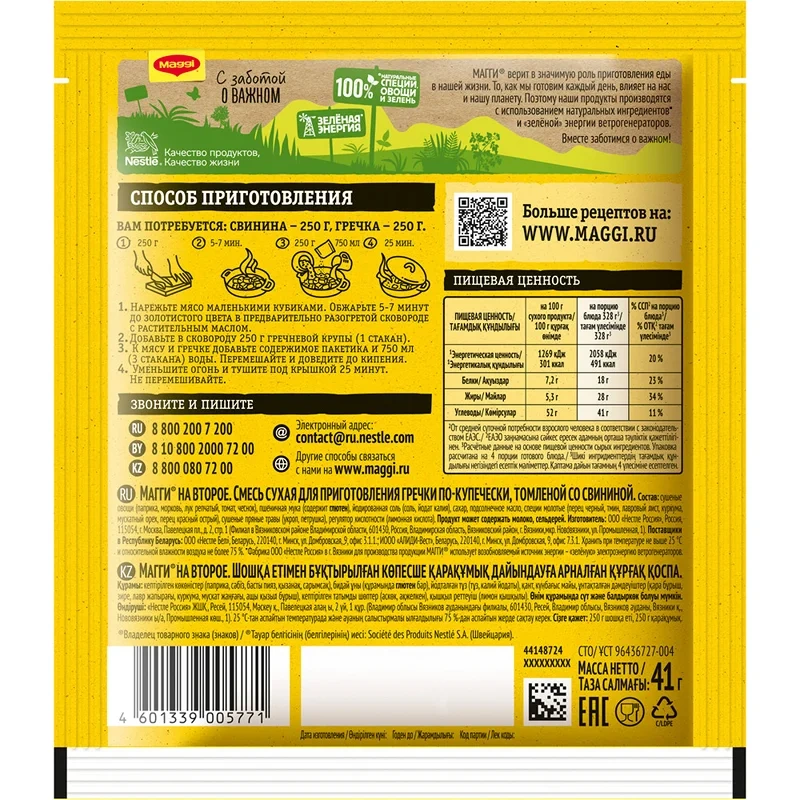 Смесь Maggi На второе для приготовления гречки По-купечески с томленой со свининой, 41г