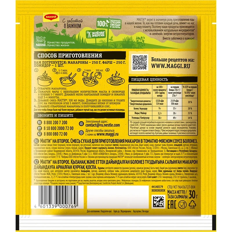 Смесь Maggi На второе для приготовления макарон в томатно-мясном соусе Болонез, 30г