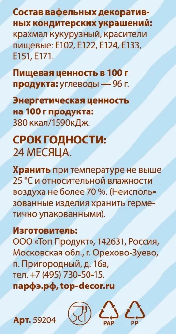 Мука пшеничная высший сорт, сахар, яичный меланж сухой, соль, разрыхлитель теста (гидрокарбонат натрия - сода пищевая), регулятор кислотности - кислота лимонная, ароматизатор Ванилин.Характеристики