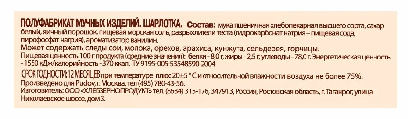Пирог с французским названием и русской душой – именно так можно назвать самый народный пирог – шарлотку. Приготовить его легко и просто – достаточно только добавить воды – поможет готовая смесь для выпечки Шарлотка С.Пудовъ. Каждая хозяйка знает, если в доме много яблок, значит пора печь шарлотку. В тесто можно добавить Корицу молотую С.Пудовъ, а готовый пирог посыпать Сахарной пудрой С.Пудовъ. Этот я??лочный пирог одинаково популярен среди детей и взрослых. Его можно подавать к затравку, в качестве десерта после обеда, а также радовать им гостей в любое время. Готовая смесь для выпечки Шарлотка позволит его готовить так часто, как вам это хочется, а главное без затрат времени и усилий.