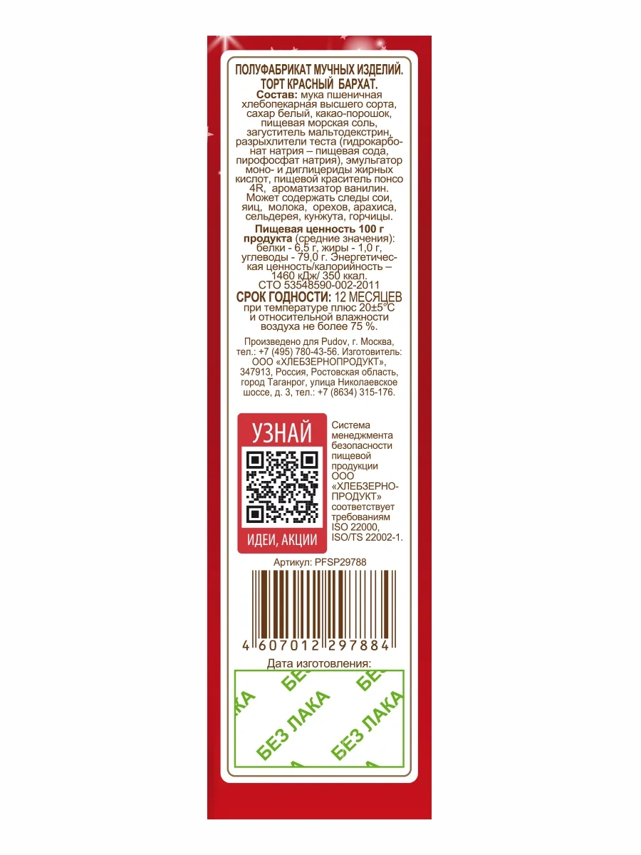 Классика кондитерского искусства Северной Америки в удобном формате готовой смеси. В начале XX века рецепты торта Красный бархат кондитеры хранили в тайне. До тех пор, пока этот десерт не начал триумфальное шествие по миру. Секрет его популярности – нежная текстура торта, он буквально тает во рту благодаря пористым и влажным коржам. За красным цветом скрывается тонкий вкус шоколада. Яркий, эффектный, нежный Торт Красный бархат С.Пудовъ может стать как украшением праздничного стола, так и собрать всю семью за домашним чаепитием.