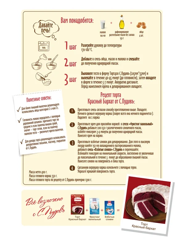 Смесь С.Пудовъ для торта красный бархат, 400г
