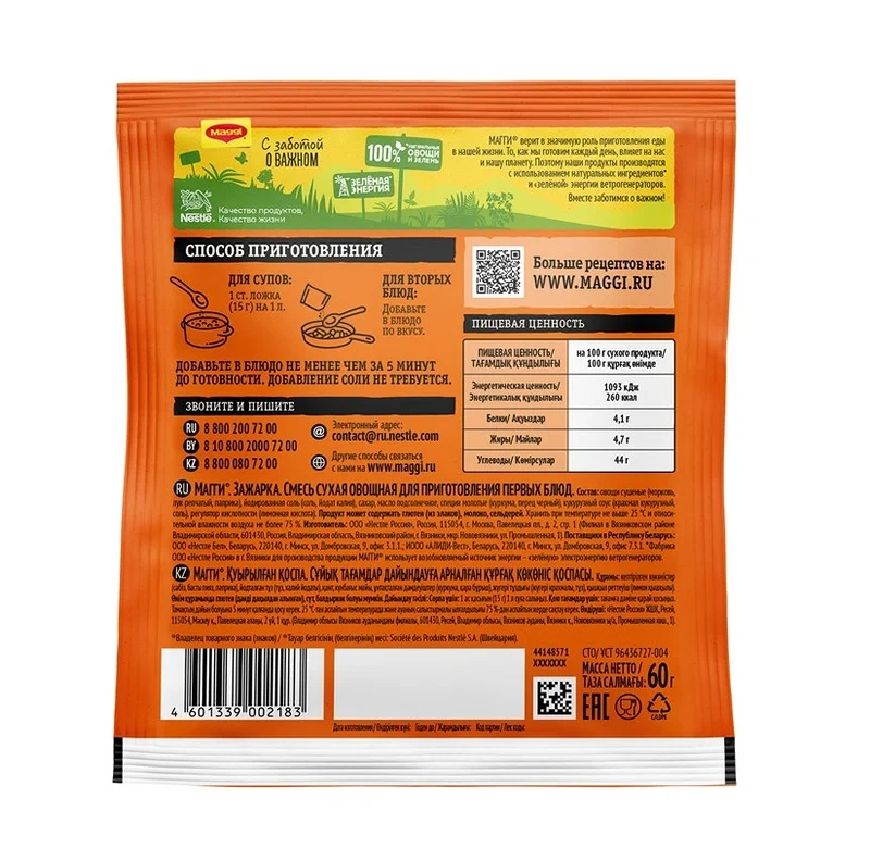 Зажарка Maggi — это классическая сухая овощная смесь, с которой можно готовить первые и вторые блюда для всей семьи. В состав входят отборные морковь, лук и паприка, а также букет специй и приправ, которые придают вашим рецептам яркий вкус и невероятный аромат. Готовая зажарка удобна тем, что вам не нужно тратить время на чистку и нарезку овощей заранее. Все необходимое уже есть в пакетике Maggi. С этой смесью можно варить супы или борщ, делать плов или тефтели, а также другие блюда.