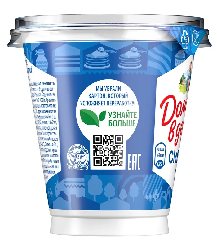 Сметана Домик в деревне – настоящая, густая, с приятным сливочным вкусом. Она готовится из свежих сливок и закваски по традиционному рецепту. Домик в деревне - все, что мы узнали о натуральности, мы узнали от бабушек. Сметана из 100% натуральных сливок. Без добавления консервантов и красителей. Жирность 15% подходит для тех, кто любит традиционный вкус сметаны. Идеально как дополнение к творогу, выпечке, супам, салатам, вторым блюдам, а также как основа для соуса и десертов.