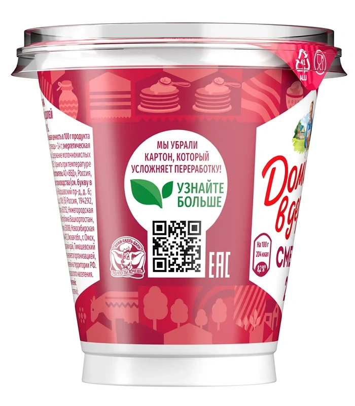 Сметана ДОМИК В ДЕРЕВНЕ 20%, 330г изготовлена из свежих сливок, имеет натуральный приятный вкус и может быть использована для приготовления большого количества блюд русской национальной кухни. Продукт обладает густой консистенцией и приятным внешним видом. Товар долго сохраняет свежесть и не имеет кислого привкуса. Удобная упаковка позволяет легко хранить сметану даже после вскрытия стакана - плотная крышка надежно закрывается и не пропускает посторонних запахов. Продукт может использоваться в выпечке, супах, соусах или других кулинарных изысках. Производитель: ОАО «ВБД», Россия. Жирность: 20%. Вес: 300г. Состав: сливки нормализованные, закваска. Пищевая ценность в 100 г продукта: жиры - 20,0г, белки - 2,5г, углеводы - 3,4г. Энергетическая ценность: 204 ккал/840кДж. Содержание молочнокислых микроорганизмов в продукте не менее 1*10 7 КОЕ/г. Хранить при температуре от +2°C до +6°С, до и после вскрытия упаковки. Срок годности: 25 суток. ГОСТ Р 52092-2003.