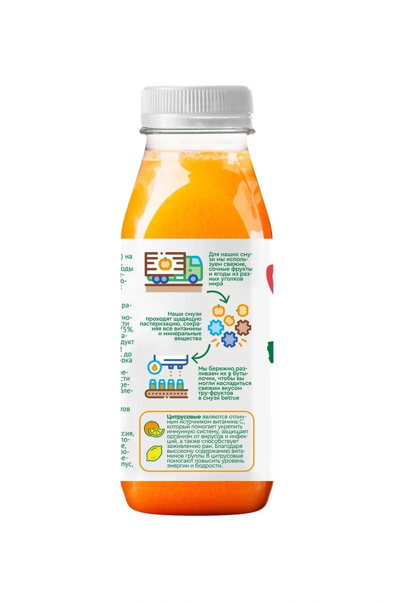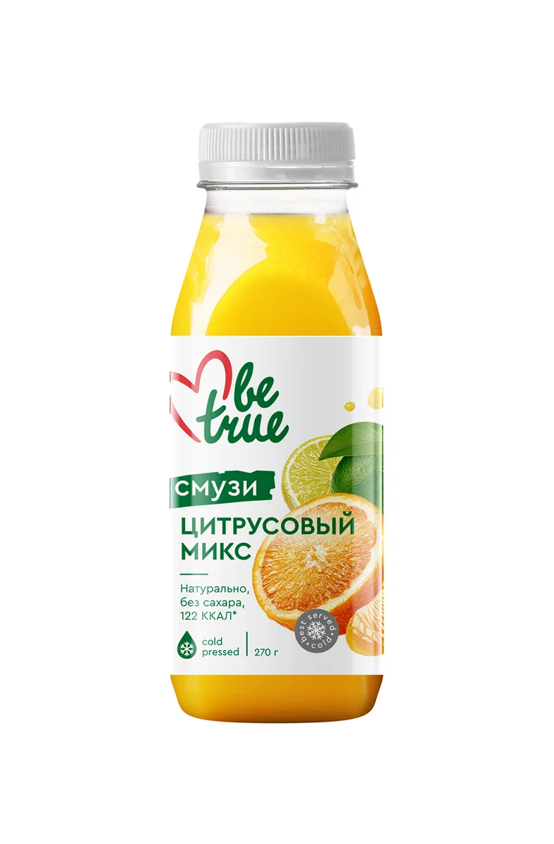 Окунитесь в освежающий мир цитрусов с смузи Цитрусовый микс от BeTrue! Этот напиток включает яблочный сок прямого отжима, банановое пюре, апельсиновый сок прямого отжима, концентрированные соки мандарина и лайма, а также лимонный сок прямого отжима. Яркий цитрусовый микс подарит вам взрыв вкусов и заряд бодрости. Наслаждайтесь освежающей свежестью цитрусов с BeTrue!