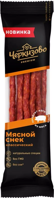 Снек мясной Черкизово Классический, 70г – пищевой продукт из вяленого и сушеного мяса, которое идеально подходит для утоления легкого голода и в качестве закуски в течение дня. Для производства используется натуральное мясо. Благодаря этому продукт имеет богатый витаминно-минеральный комплекс, способный оказывать положительное влияние на весь организм в целом. Благодаря особому процессу производства продукт сохраняет максимум питательной ценности и все свойства исходного продукта. При этом он характеризуется длительным сроком хранения. За счет небольших размеров снек можно брать с собой в дорогу, пешие походы и путешествия.