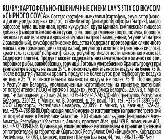 Снеки Lay's Stix картофельно-пшеничные с сырным соусом, 50г