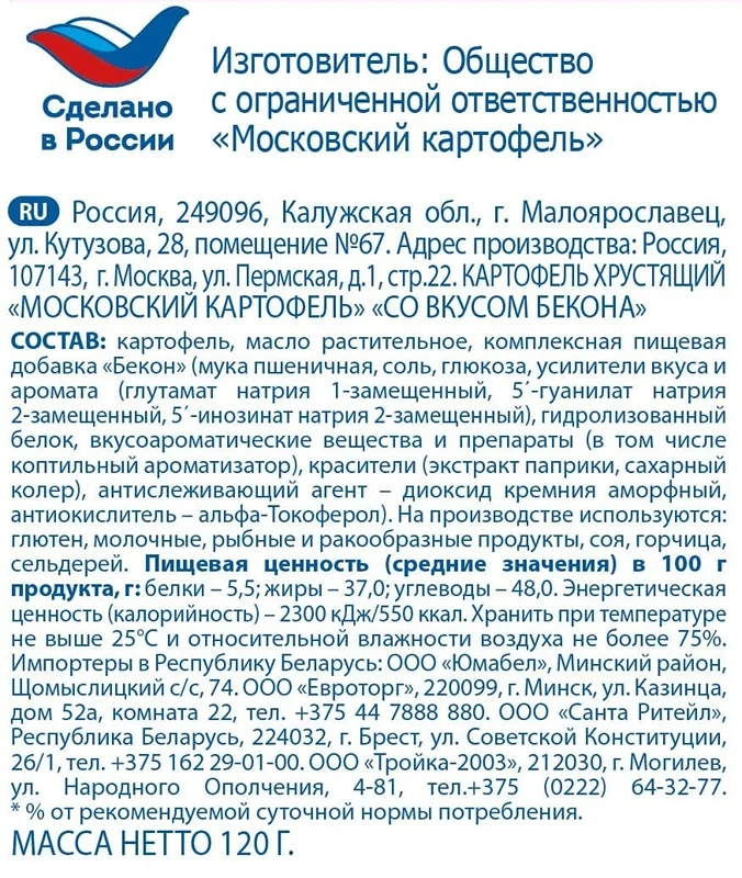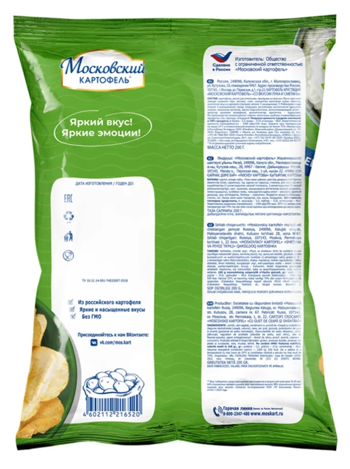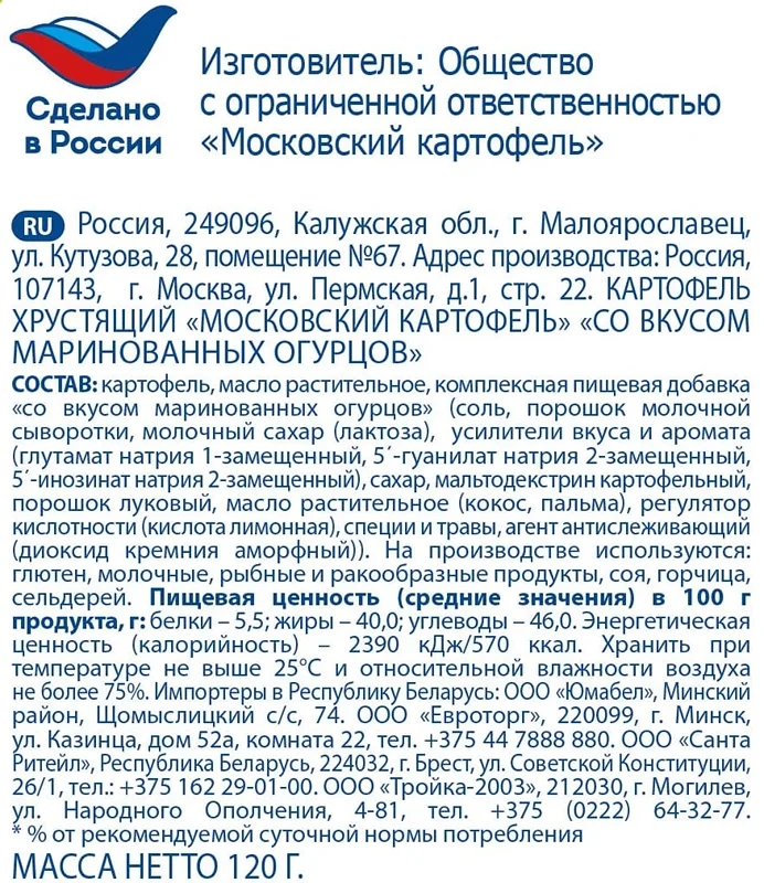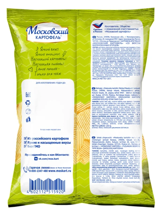 Чипсы Московский картофель рифленые маринованные огурцы, 120г