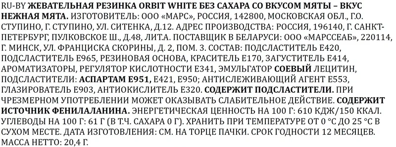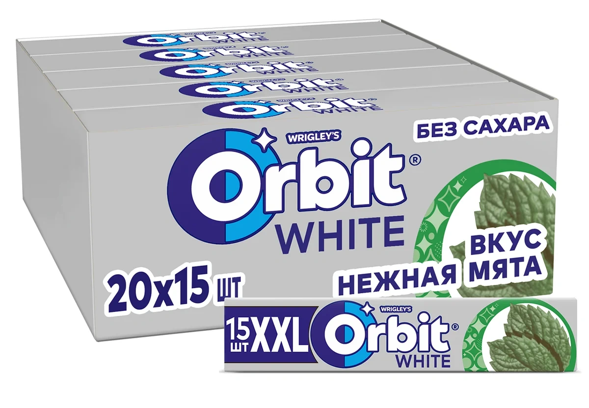 Жевательная резинка Orbit White XXL Нежная мята без сахара, 21г