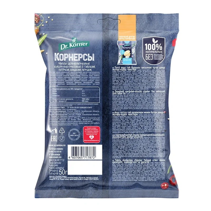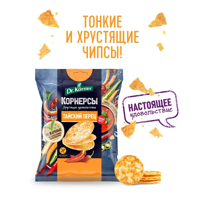 Чипсы кукурузно-рисовые Dr. Korner Тайский перец, 50г