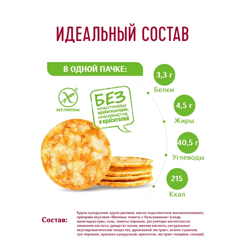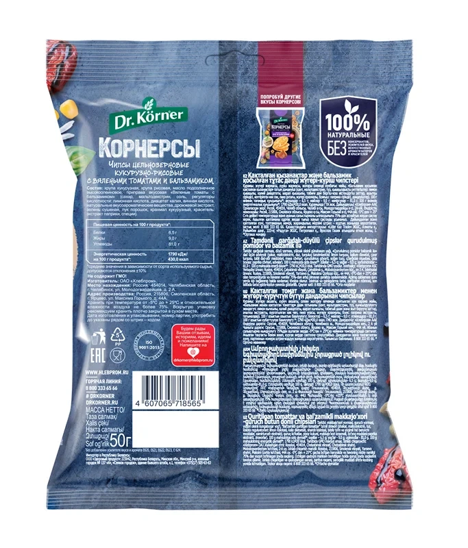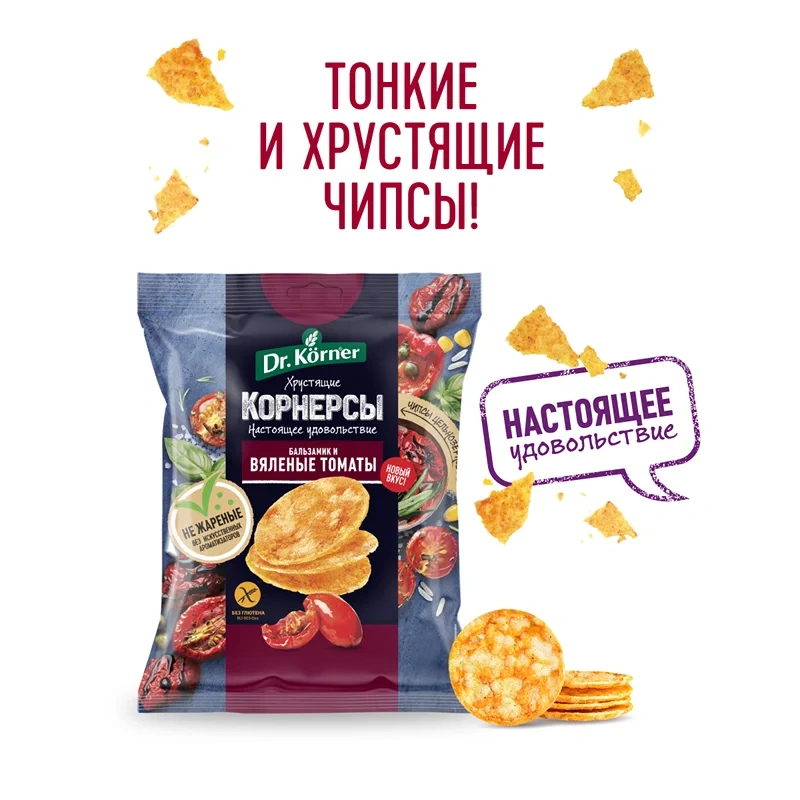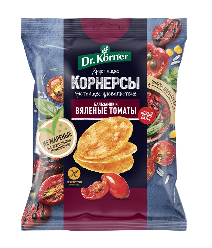 Чипсы кукурузно-рисовые Dr. Korner Вяленые томаты и бальзамик, 50г