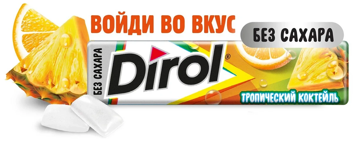 Жевательная резинка Dirol Тропический коктейль без сахара, 13.6г