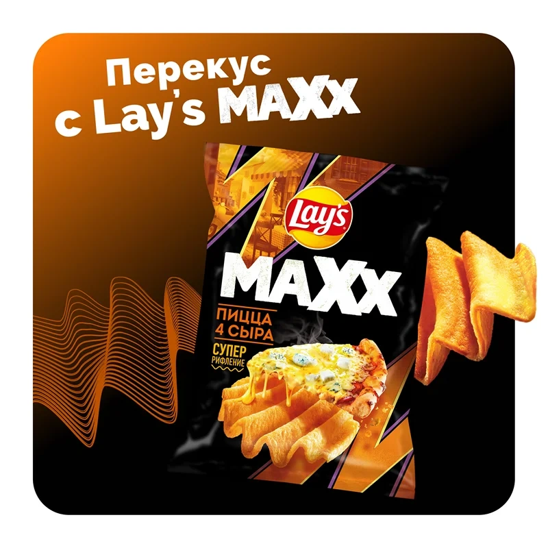 Чипсы Lay's Maxxx Пицца 4 сыра, 100г