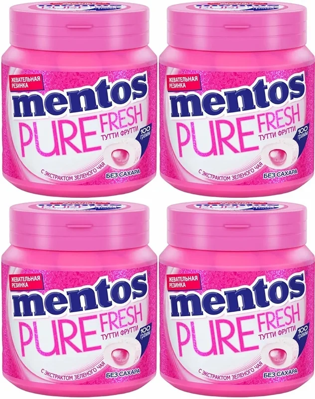 Жевательная резинка Mentos Pure Fresh Тутти Фрутти, 100г x 4 шт