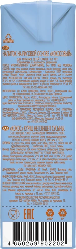 Напиток на рисовой основе Nemoloko кокос, 200мл