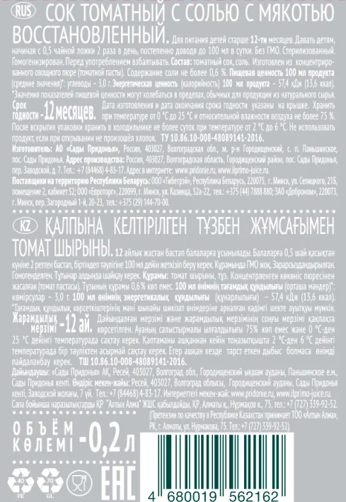 Сок IL Primo томатный с солью, 200мл x 8 шт - натуральный томатный сок премиум качества без добавления сахара, изготовленный из сладких помидоров, которые выращиваются на Нижней Волге в условиях жаркого солнечного климата на благодатной, плодородной почве. Особая технология производства позволяет сохранить все полезные свойства плодов. Сок подходит для питания детей, начиная с 1 года. Он разливается в изящную бутылочку, которую всегда удобно взять с собой.
